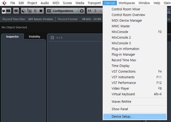 1. 큐베이스 메뉴 Device - Device Setup