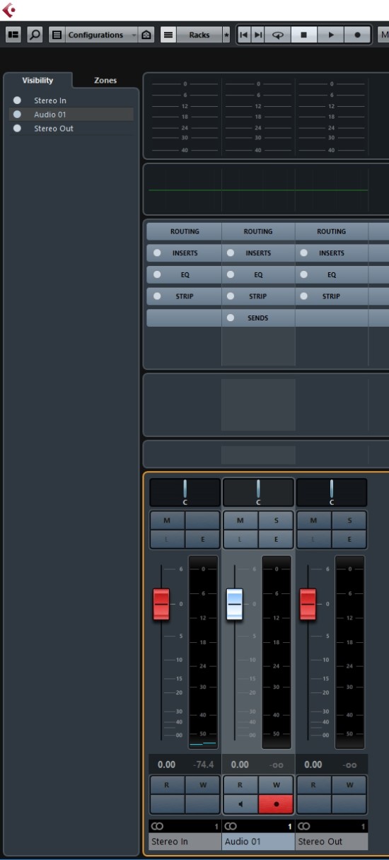 큐베이스에서 소리가 제대로 나지 않을 때 제일 먼저 살펴보아야 할 것은,