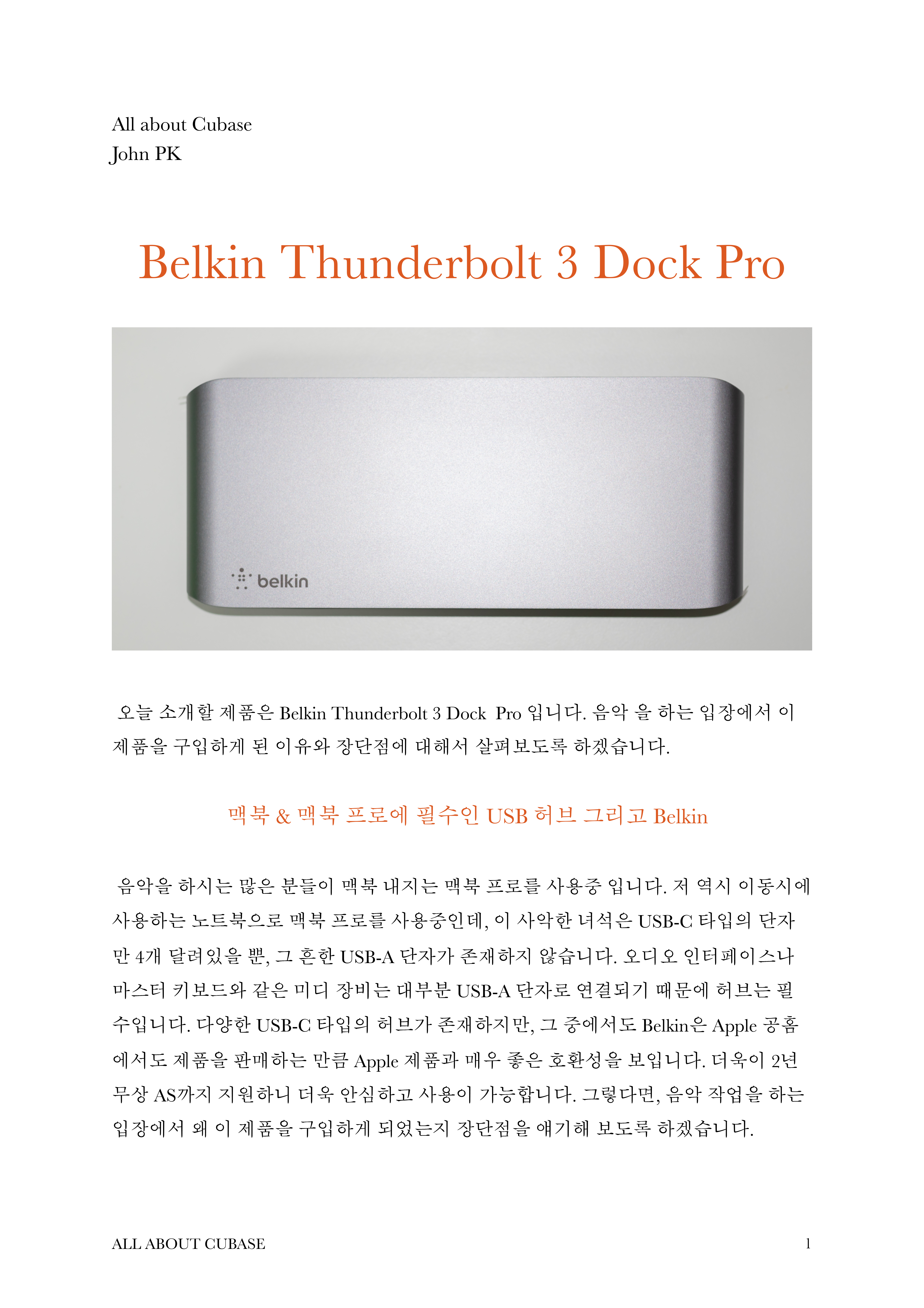 개인적으로 작업용으로 맥북프로를 사용하면서 많은 허브를 사용해 보았습니다.